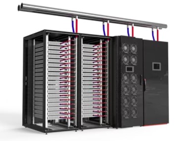 Bilden visar nVents multifold som levererar kylmedel ut till serverskåpen för att kyla GPU:er i datacenter. Källa: nVent hemsida.