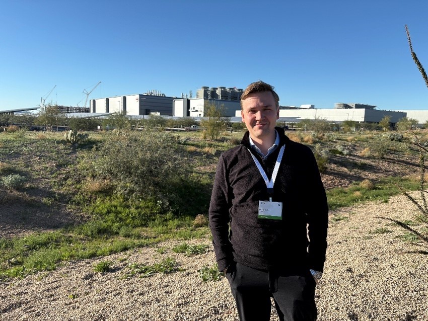 På besök utanför TSMCs Fab 21 utanför Phoenix i Arizona. Det är här TSMC har sin närvaro i USA med tre fabriker för tillfället som ska utökas med ytterligare tre kommande år. Foto: Brock Milton Capital.