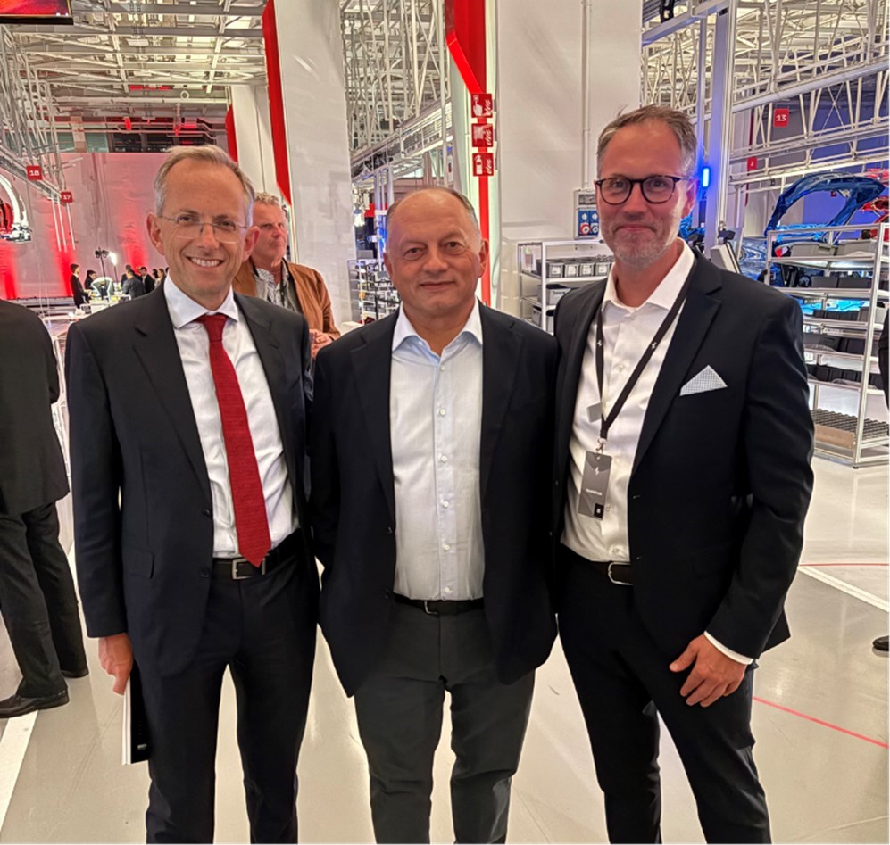 Bildtext: Jag står tillsammans med Ferraris CEO Benedetto Vigna och stallchefen för Formula 1 teamet Frédéric Vasseur.