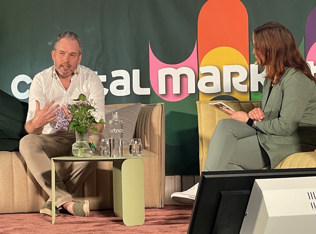 Bildtext: CEO Tommy Eklund i soffan på Fortnox kapitalmarknadsdag i maj 2024.
