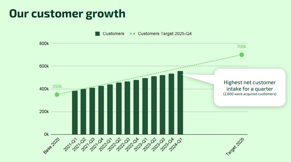 Bild: Fortnox ligger lite under sitt tillväxtmål för kunder fram till år 2025. Källa: Fortnox.