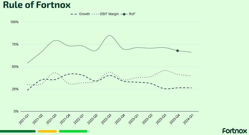 Bild: Rule of Fortnox från den senaste kvartalsrapporten Q1 2024.