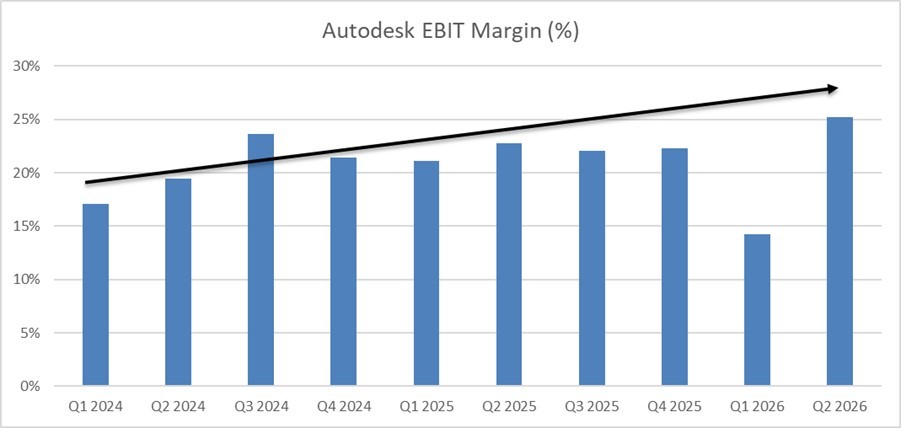 Caption: Autodesk's EBIT margin trends upward. Source: Bloomberg.
