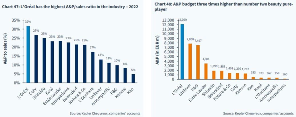 This has provided L’Oréal with what is, in principle, an unrivaled position from which it can spend three times more on marketing than its closest competitor. L’Oréal is de facto the market player spending the highest percentage of its turnover on marketing. Given that the company is the largest player on the market, it quickly becomes clear that we are talking about enormous sums that its competitors simply cannot match. If a competitor cannot match the sector number one, it becomes particularly difficult to close the gap to that player.