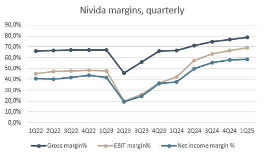 The key reason for its solid growth is that customers—hyper-scalers in the US, most of all—have increased their investments (capex) in data centers by an average of 25% a year over the past ten years. This outstrips their turnover, which has expanded by 18% over the same period. This means that the intensity has increased and a larger share of turnover than before is now assigned to these investments. Ten years ago, they were expending about 4% of their turnover on such investments, while today this figure is closer to 12%. These investments primarily consist of constructing and equipping data centers to be able to provide cloud solutions, and now AI initiatives, favoring Nvidia considerably. During Q1, the hyper-scalers accounted for “just” 40% of turnover, having been at closer to 100% for many consecutive quarters, as they were early adopters of the newest GPUs to scale up their AI initiatives. This is particularly positive as the remaining 60% comes from enterprise—everything from vehicle manufacturers and banks to software companies, which are now also investing heavily in their own GPUs to drive AI. In this way, Nvidia is diversifying its customer base and reducing its dependency on those four US hyper-scalers. This also shows that AI is a widespread phenomenon among companies wanting to boost their productivity through increased sales and lower costs.