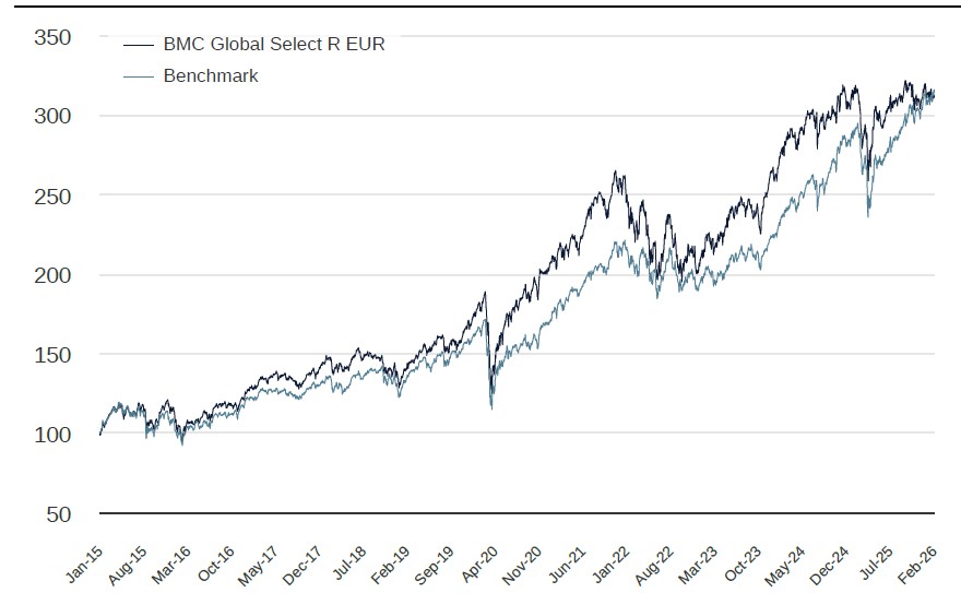 The stocks that contributed most strongly to the fund's performance in the month were TSMC, Kandenko, and Wheaton Precious Metals, while the weakest contributors were FlatexDEGIRO, Amazon, and Charles Schwab. Among the market movements, we want to highlight Kandenko, which is one of the Japanese installation companies constructing datacenters in the country. We had an instructive meeting with the company's CFO when we visited Tokyo before Christmas, and we believe the company has at least three to five years of strong growth ahead of it. However, the month also saw FlatexDEGIRO and Charles Schwab—both online share and fund brokerage platforms—impacted by disruptive AI sentiment that threw a wet blanket over many names around the world, from software firms to online brokers and banks. We note, however, that FlatexDEGIRO's share price has picked up since the end of February.