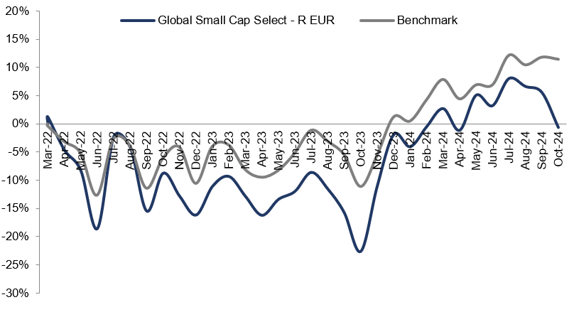 Our global small cap fund offers an exciting blend of solid Champions and thrilling Special Situations stocks. We expect the fall's rate cuts will prove a key trigger for returns in the future. A further positive factor for the equity markets is the end of the US presidential race, which we can now put behind us. At the time of writing, BMC Global Small Cap Select sees forecasted aggregated profit growth of around 15% for the coming year, which would contribute positively to the fund's future returns.