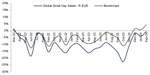 The best-performing shares during February were Napco Securities, Sterling Infrastructure, and Modine Manufacturing. Those with the weakest performance in the month were Aixtron, Alfen, and Axcelis Technologies.