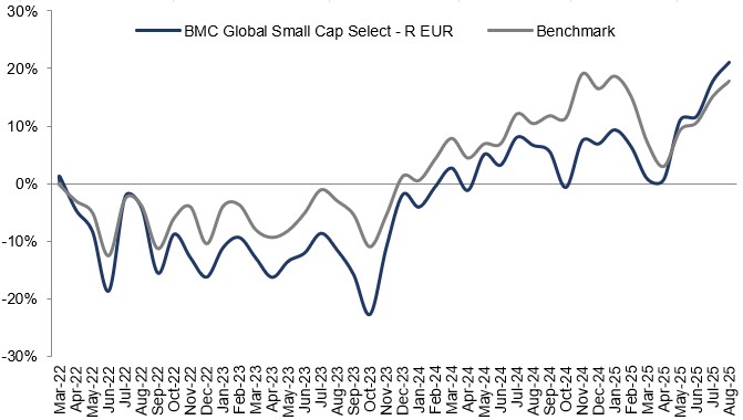 Im August standen erneut die Small Caps und ihre Leistungen im Zentrum der Aufmerksamkeit, auch wenn diverse politische Äußerungen und geopolitische Ereignisse Teile des Marktes beeinflussten. Unter anderem signalisierte US-Notenbankchef Jerome Powell in einer Rede, dass eine Zinssenkung im September durchaus im Bereich des Möglichen liege. Die Nachricht wurde vom Aktienmarkt gut aufgenommen, und die Kurse zinssensibler Titel vollführten anlässlich der Rede einen Freudensprung. Gleichzeitig sorgt Donald Trump weiterhin für Unsicherheit, unter anderem mit Aussagen gegen einzelne Fed-Mitglieder und Kommentaren zu den Zinsniveaus. Sein Agieren torpediert das System einer unabhängigen Zentralbank und sorgt für starke Volatilität unter anderem am Devisenmarkt, an dem der US-Dollar weiter an Wert verliert.