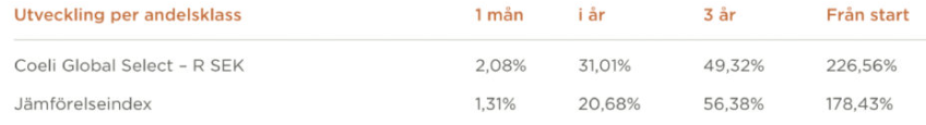 Vad som är glädjande att se, är att det finns starka bidragsgivare till avkastningen inom bland annat byggsektorn och bilindustrin. Det är alltså inte bara teknikbolagen som drivit den goda avkastningen vilket visar på bredden i vår portfölj.