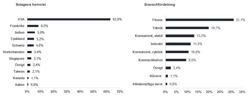 Globalfonden hade en något svagare utveckling under månaden mest beroende på att mjukvaru- och industribolagen bidrog negativt till utvecklingen. De positiva bidragen kommer ifrån aktier som gynnas av en lägre ränta i USA.