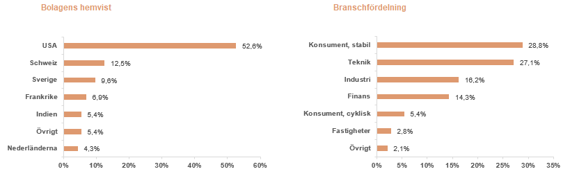 Vid månadsskiftet hade vi en spännande och diversifierad portfölj bestående av 33 bolag. Vinsten för fondens innehav som helhet, är estimerad att under nästa år växa med cirka 15%. En mycket solid siffra som bådar gott inför framtiden trots det tuffa ekonomiska läge världen befinner sig i idag.