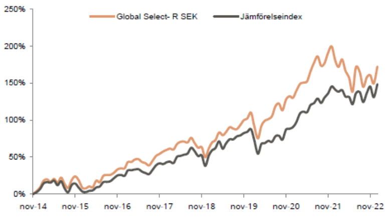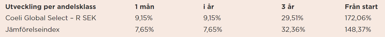 Vårt förvaltningsarbete under hösten 2022 börjar nu ge utdelning och fonden utvecklades 1,5 procentenheter bättre än vårt jämförelseindex i januari. Tre av de fyra aktier som gick bäst under månaden var bolag vi passade på att köpa under 2022 när dessa var oförskämt billiga; Autonation, Société Générale samt MSCI. Bland de aktier som gick svagast hittar vi våra indiska banker, aktier som gick starkt under 2022 men som nu hämtar andan en aning. Under februari rapporterar de flesta av fondens innehav och vi ser med spänning fram emot att ta del av deras kvartalsrapporter.