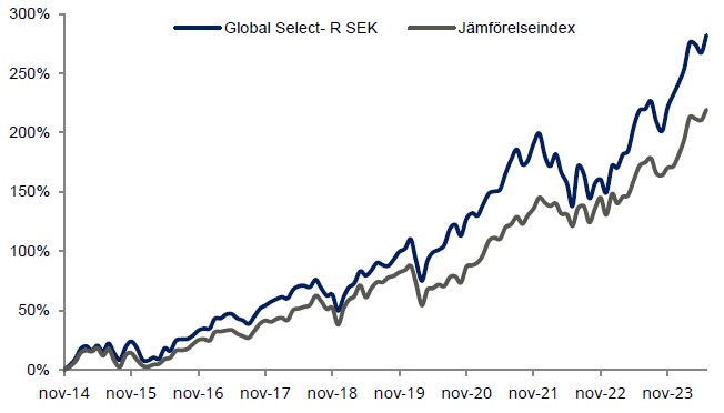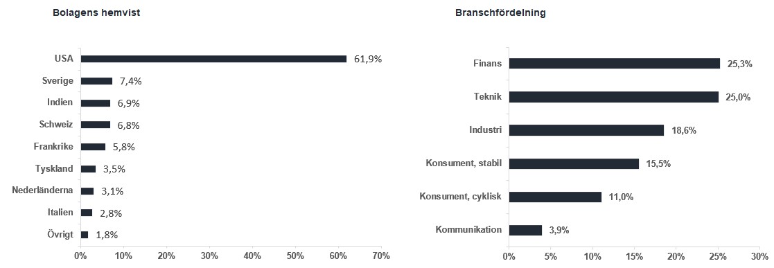 De händelser som har haft störst påverkan på börserna under månaden har varit en allmän ”Tech-frossa”, särskild oro för halvledarsektorn och en allmän oro för en försämrad amerikansk konjunktur. Utöver det, så ligger den negativa utvecklingen i konflikten mellan Israel och Hamas/Hizbollah/Iran som en våt filt över marknaden. Efter månadsskiftet så har även den kraftiga nedgången på den japanska aktiemarknaden påverkat de globala börserna negativt med stora nedgångar som följd. När den japanska centralbanken lite oväntat bestämde sig för att höja räntan så har den enorma, så kallade Yen carry-traden, tvingat många hedgefonder att avveckla sina positioner vilket lett till stora rörelser på marknaden. Rörelser som troligen kommer lugna ned sig ganska snabbt när väl positionerna är sålda. Vi äger inga japanska bolag i fonden.