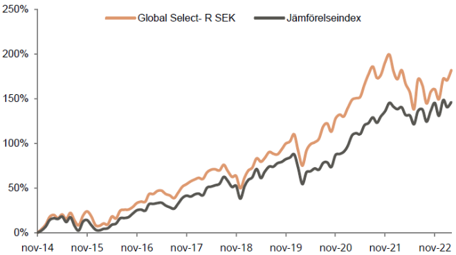 Vi gick in i 2023 med en portfölj bestående av Världens Finaste Bolag, en portfölj med några av världens starkaste varumärken, företagsledningar och där företagen har bra vinsttillväxt samt låg skuldsättning. Det är glädjande att se att portföljen levererar enligt plan och det är med hög optimism som vi ser fram emot under kommande år.