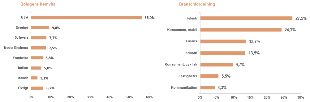 De aktier som gick starkast under månaden var United Health Group, Watsco och Fortnox. De tre aktier som hade den svagaste utvecklingen var Societe Generale, Adobe samt Lonza.