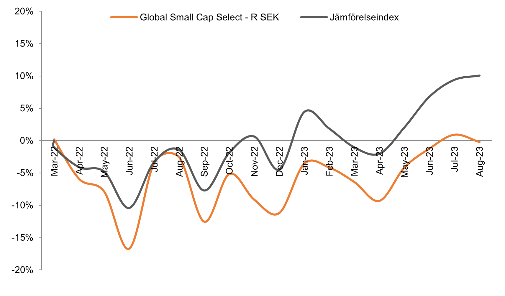 Vi tycker att vi har en attraktiv global småbolagsfond med fina entreprenörsdrivna Champions och lågt värderade Special Situations. Våra innehav har en samlad prognostiserad vinsttillväxt som uppgår till mer än 19% mellan 2023 och 2024. Den aggregerade tillväxten i omsättningen, är enligt prognoserna mer än 12 %, under samma period. Vi anser att de höga tillväxttalen är synnerligen attraktiva i en värld där många länder kämpar för att växa sin BNP och undvika recession.