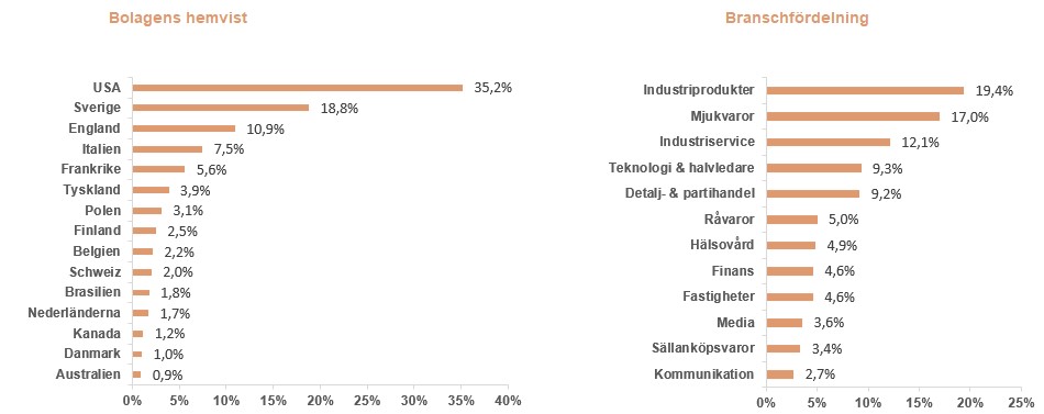 Genom de förändringar vi gjort under månaden har vi ökat vår exponering mot amerikanska bolag. Med tanke på det stora utbudet av småbolag är den amerikanska aktiemarknaden en bra plats att leta efter kvalitativa tillväxtbolag. Vi tror att en miljö med fallande räntor kommer vara gynnsamt för aktiemarknaden, i synnerhet småbolag. När väl räntesänkningarna tar fart kommer konsumenten att få mer pengar att spendera på konsumtion. Vi ser framför oss en dubbelt positiv effekt i resultaträkningen hos bolagen i form av högre omsättning och lägre lånekostnader, vilket kommer driva aktiekurserna uppåt då det ger en fin positiv effekt på vinst per aktie.