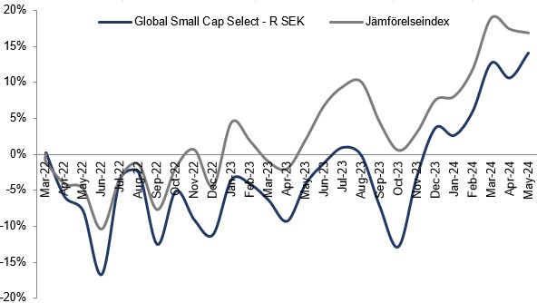 De aktier som gav det bästa bidraget under månaden var Blue Bird, VBG Group och Lindex Group. De aktier som hade den svagaste utvecklingen var Enghouse Systems, Alamo Group och Eagle Materials. Månadens bästa aktie var amerikanska Blue Bird som steg cirka 30% på rapportdagen. Aktien tog ett rejält glädjeskutt då vinsten per aktie slog förväntningarna med 89%. Bolaget passade också på att höja guidningen för både omsättning och EBITDA.