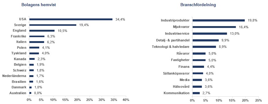 Månadens starka uppgång visar att fonden följer med bra i en uppåtgående marknad. Vi tycker att vi har en bra balans mellan olika regioner samt branscher, och ser framför allt ett stort värde i europeiska småbolag, som framstår som lägre värderade i jämförelse med sina amerikanska motsvarigheter.