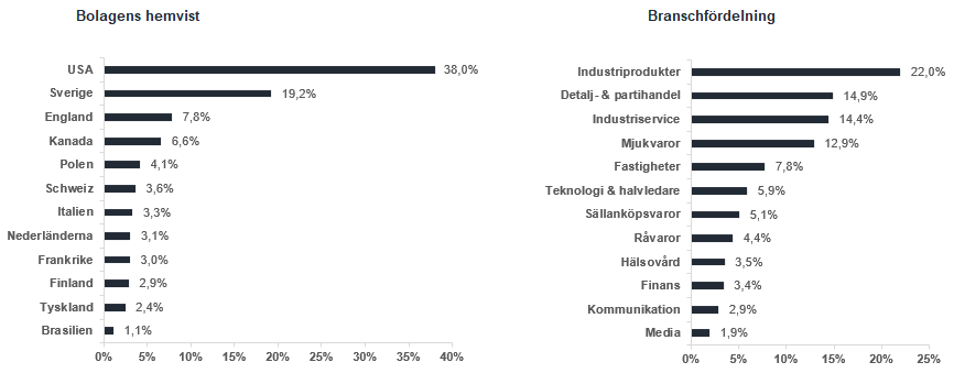 De aktier som gav det bästa bidraget under månaden var IDT Corporation, United States Lime & Minerals och Games Workshop. De aktier som hade den svagaste utvecklingen under månaden var Axfood, VBG Group och Catena. Under månaden hade vi också en del valutaeffekter som påverkade avkastningen då den svenska kronan försvagades mot dollarn.