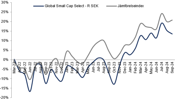 I skrivandens stund har BMC Global Small Cap Select en förväntad aggregerad vinsttillväxt under kommande år på mer än 21%. Lägg till att fonden handlas till ett P/E-tal på cirka 17 för nästa år, så ser det väldigt intressant ut. Vi bedömer att höstens räntesänkningar kommer vara en viktig drivare för avkastningen framåt för småbolagsfonden.