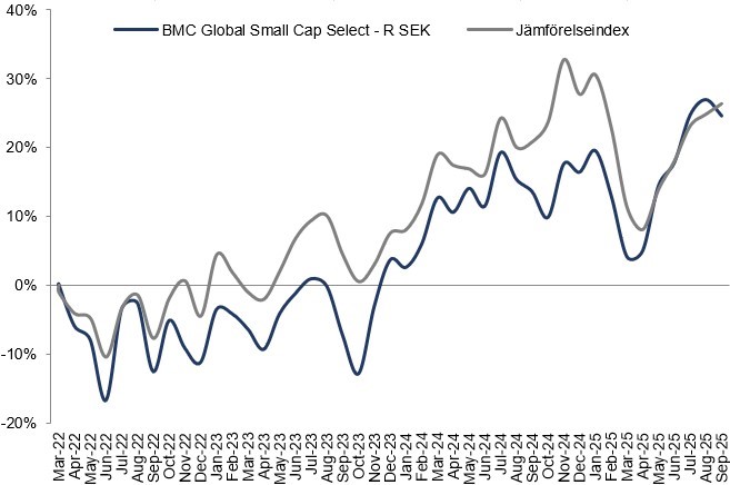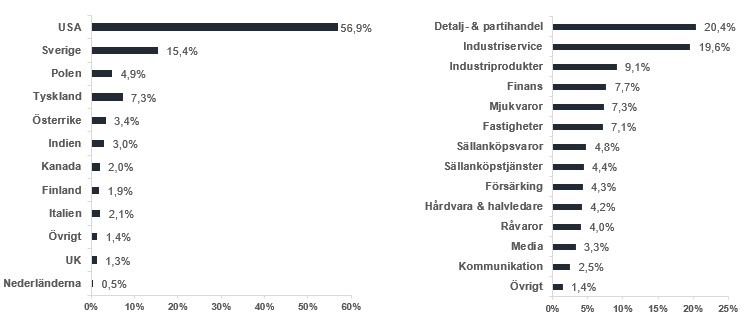 Fonden består just nu av 38 bolag med exponering mot en rad olika sektorer och geografier som är noga utvalda på bolagets egna meriter. Över tid är vår bedömning att en koncentrerad, men samtidigt diversifierad, aktivt förvaltad småbolagsfond med fokus på stockpicking har förutsättningarna att leverera god avkastning till andelsägarna.